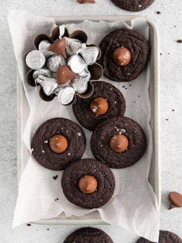 My easy chocolate kiss cookies are rich, fudgy, and delicious. I love making them for Christmas every year because they are so easy!
